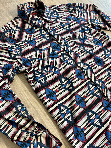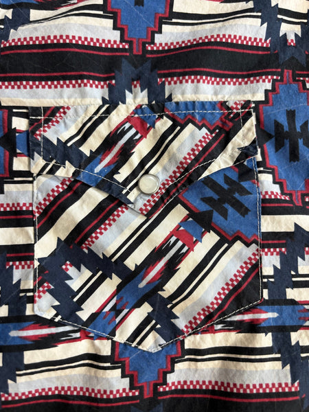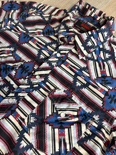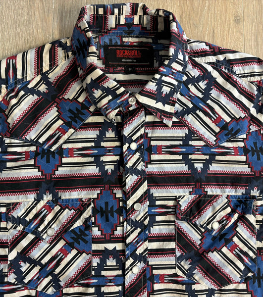 Sm/Med - Classic Rock & Roll Denim White/Blue Southwestern Pearlsnap Western Shirt