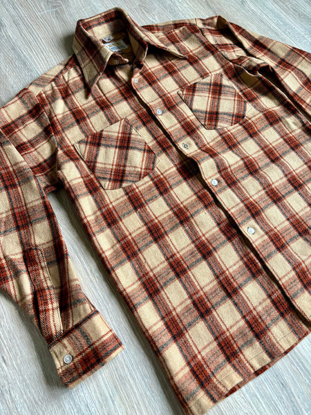 Sm/Med - Vintage 70s Beige/Brown Thick Flannel Button-Up Board Shirt / Shacket
