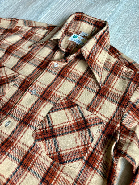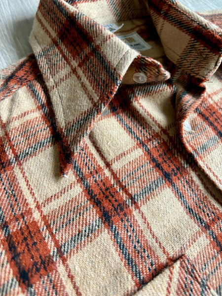 70s autumn colors on a thicker flannel material with wing tipped collar