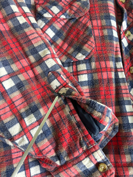 Large - Vintage 80s Quilt Lined Red/White/Blue Plaid Flannel Button-Up Shirt / Jacket / Shacket
