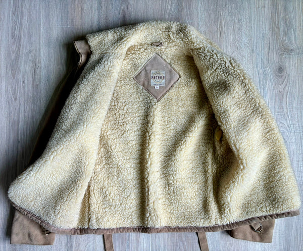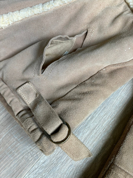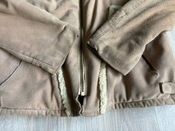 Incredible sued coat from the golden days with a thick suede outer to protect from the wind and sherpa lined for warmth.