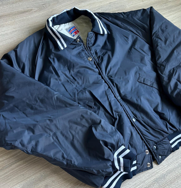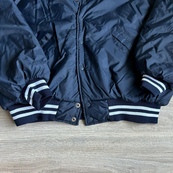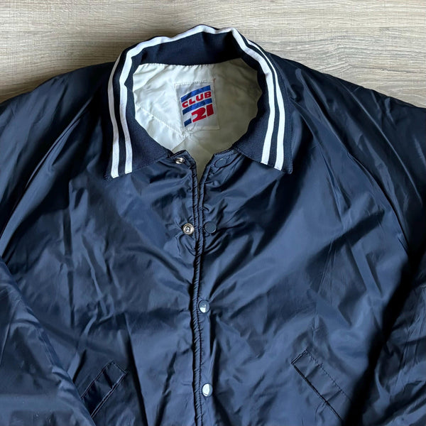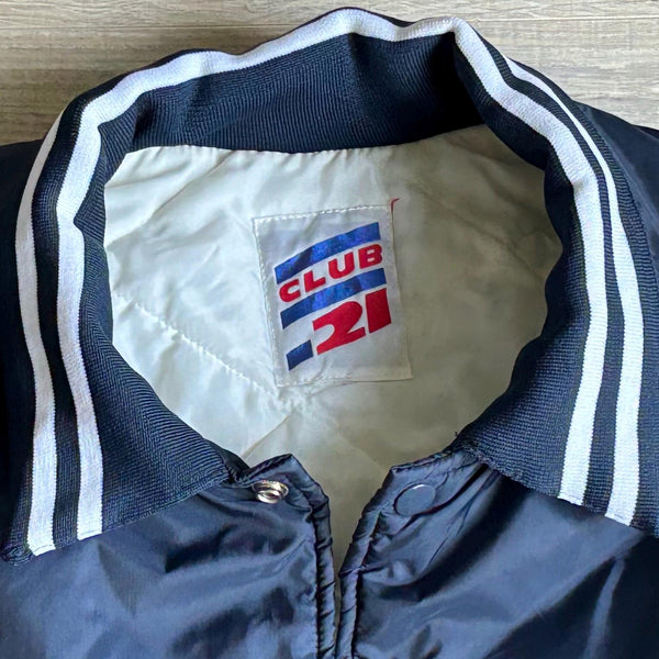 Vintage 80s Club 21 Navy Blue & White Satin Bomber Jacket (Mens L/XL)