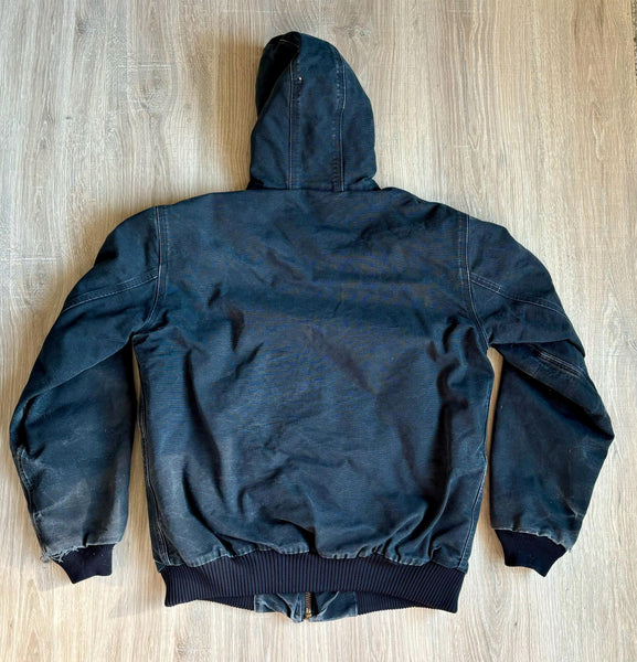 Vintage 90s Black Carhartt Faded & Distressed Hooded Jacket (Men's Medium)