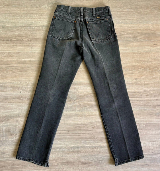 Vintage 70s Wrangler Faded Black / Gray MWZ Western Cowboy Cut Jeans (29 waist)
