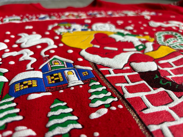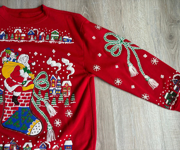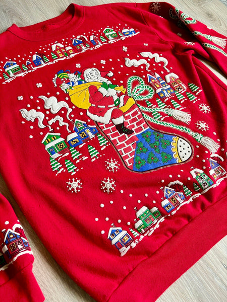 Med/Lrg - Vintage 80s Puff Print Christmas / Santa Claus / Snow Grandma Sweatshirt