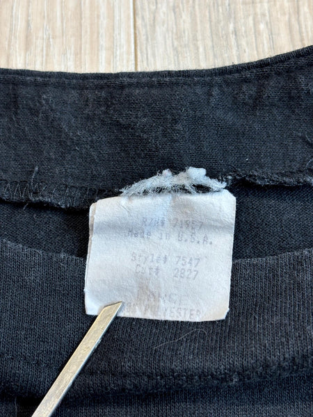 Medium - Vintage 90s Black Custom Fringe Cropped Western T-Shirt w/ Conchos