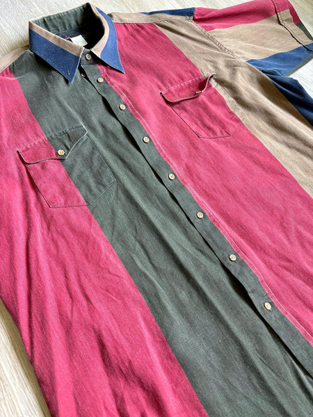 XXL - Vintage 90s Ruddock Red Green blue Beige Striped Western Short Sleeve Button Up Shirt